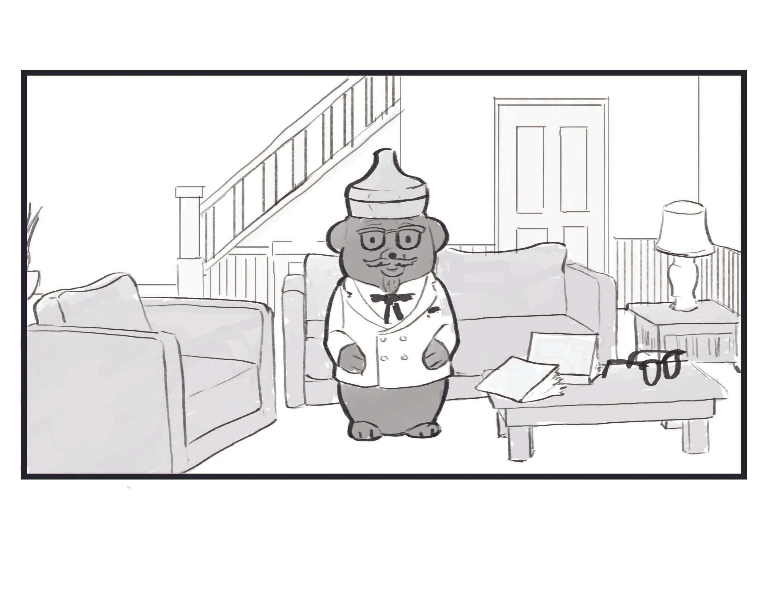 Rough boards for a short film about the day in the life of a stuffed rabbit.